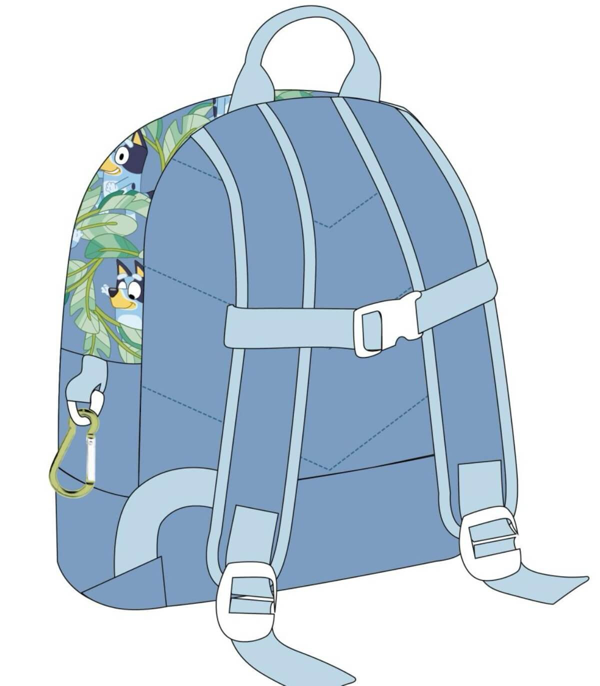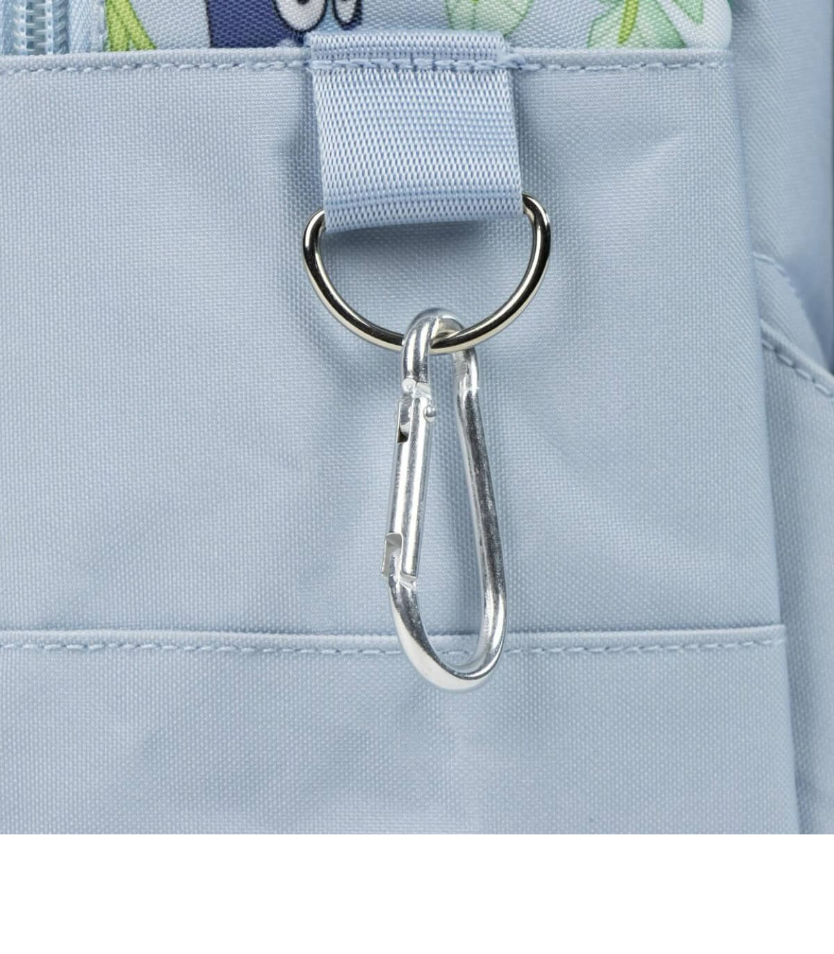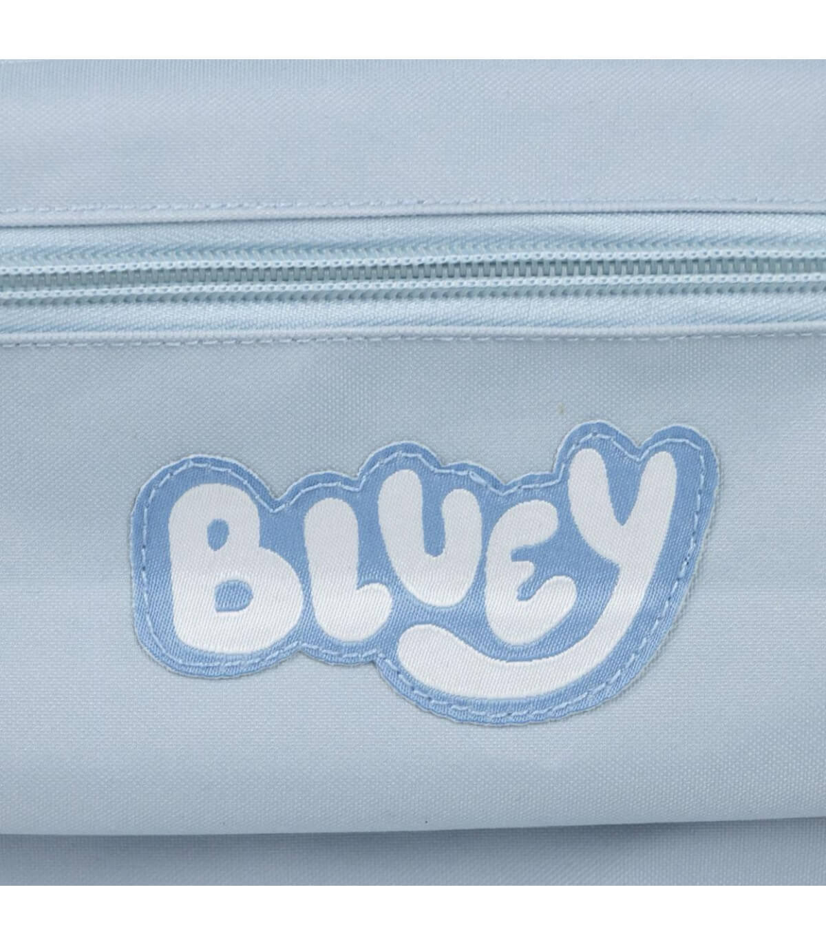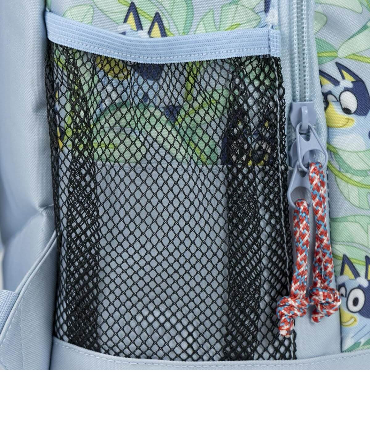 Раница за детска градина Блуи, изработена по европейски дизайн, на испанския производител Cerda. С едно основно отделение с двоен цип, преден джоб с цип, страничен мрежест джоб, подсилено дъно, подплатен гръб, подплатени регулируеми презрамки и дръжка за носене в ръка. Подходящо за момичета и момчета от 1 до 3 години.