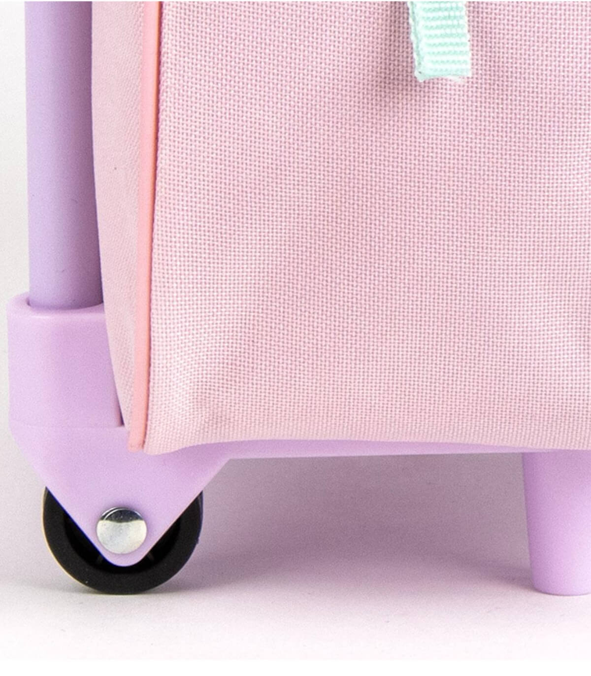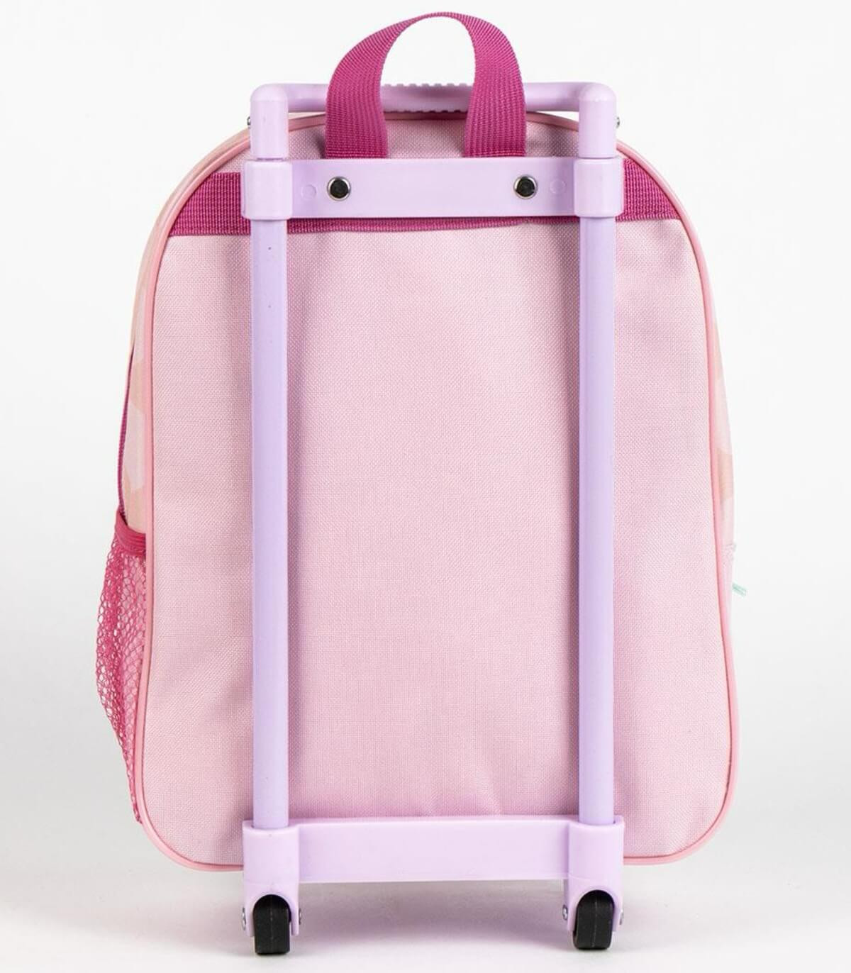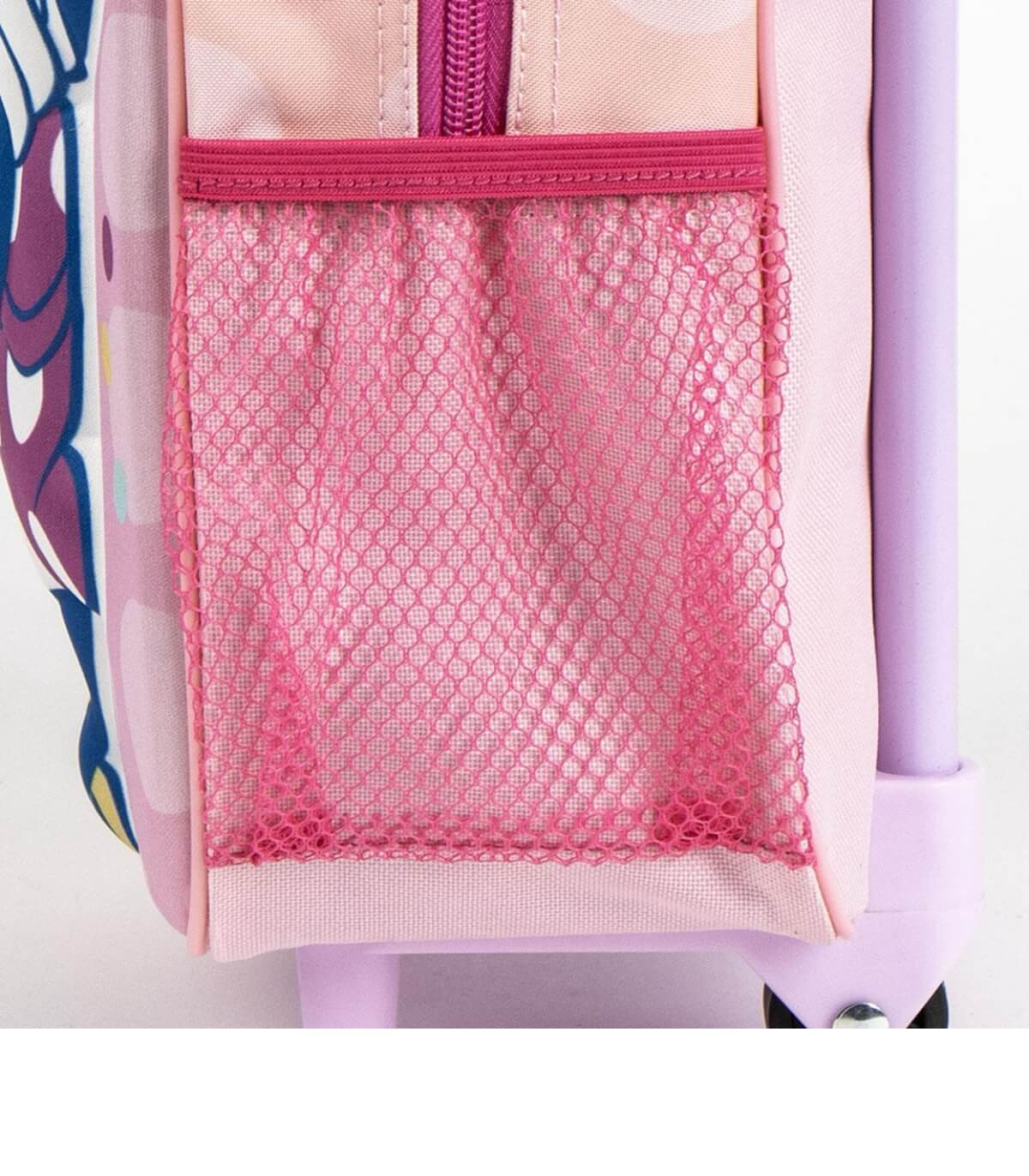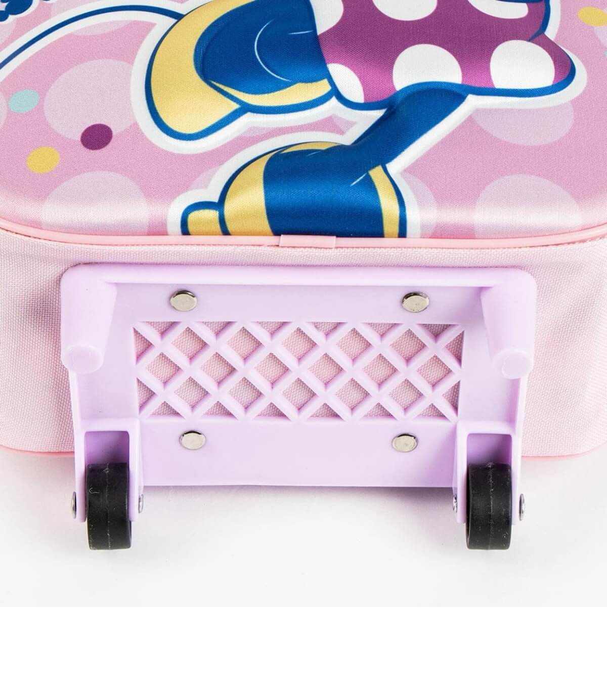 Раница за предучилищна възраст Мини Маус, изработена по европейски дизайн, на испанския производител Cerda. С 3D панел, едно основно отделение с цип, страничен мрежест джоб, дръжка за носене в ръка, телескопична дръжка и колелца. Подходящо за момичета от 3 до 6 години.