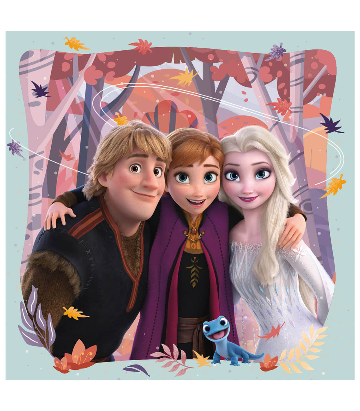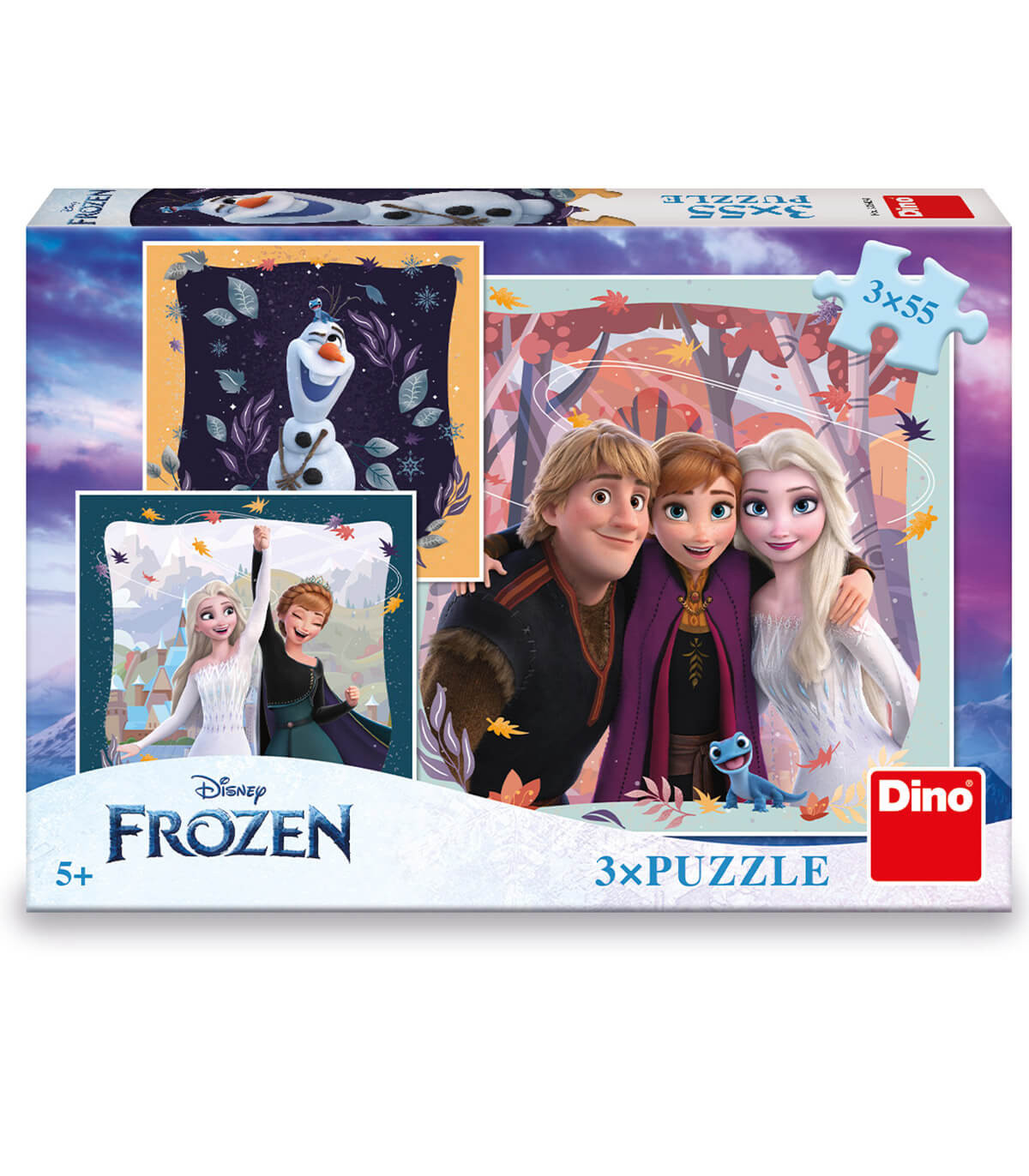 Висококачествен пъзел Замръзналото кралство, предназначен за момичета над 5 години. Опаковката съдържа 3 бр. пъзела от по 55 части. Подходящ подарък за рожден ден, Коледа или друг повод.