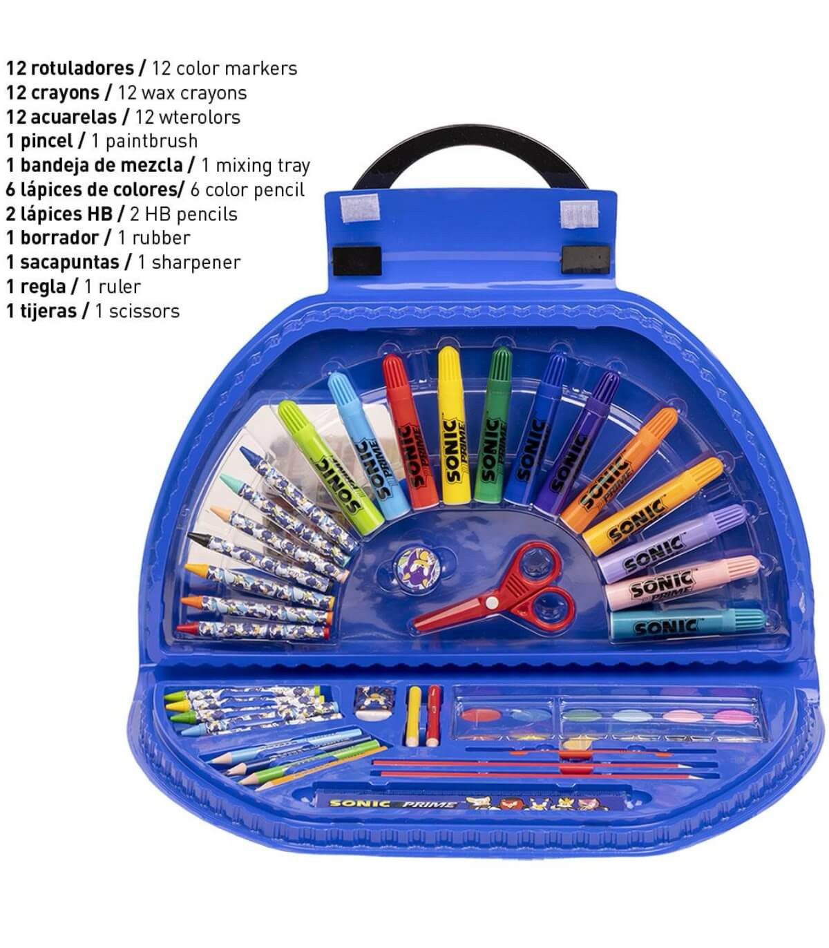 УЧЕНИЧЕСКИ КОМПЛЕКТ ЗА РИСУВАНЕ 50 ЧАСТИ SONIC В БЛИСТЕР