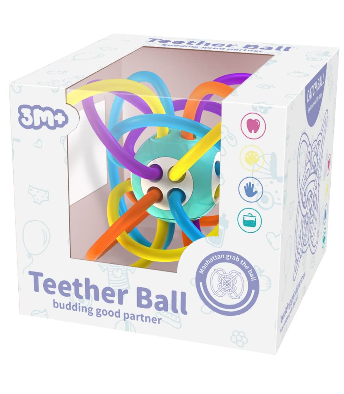 Чесалка за зъби, изработена от меки силиконови шнурчета в ярки цветове и безопасна пластмаса. Подходящо за момичета и момчета над 3 месеца.