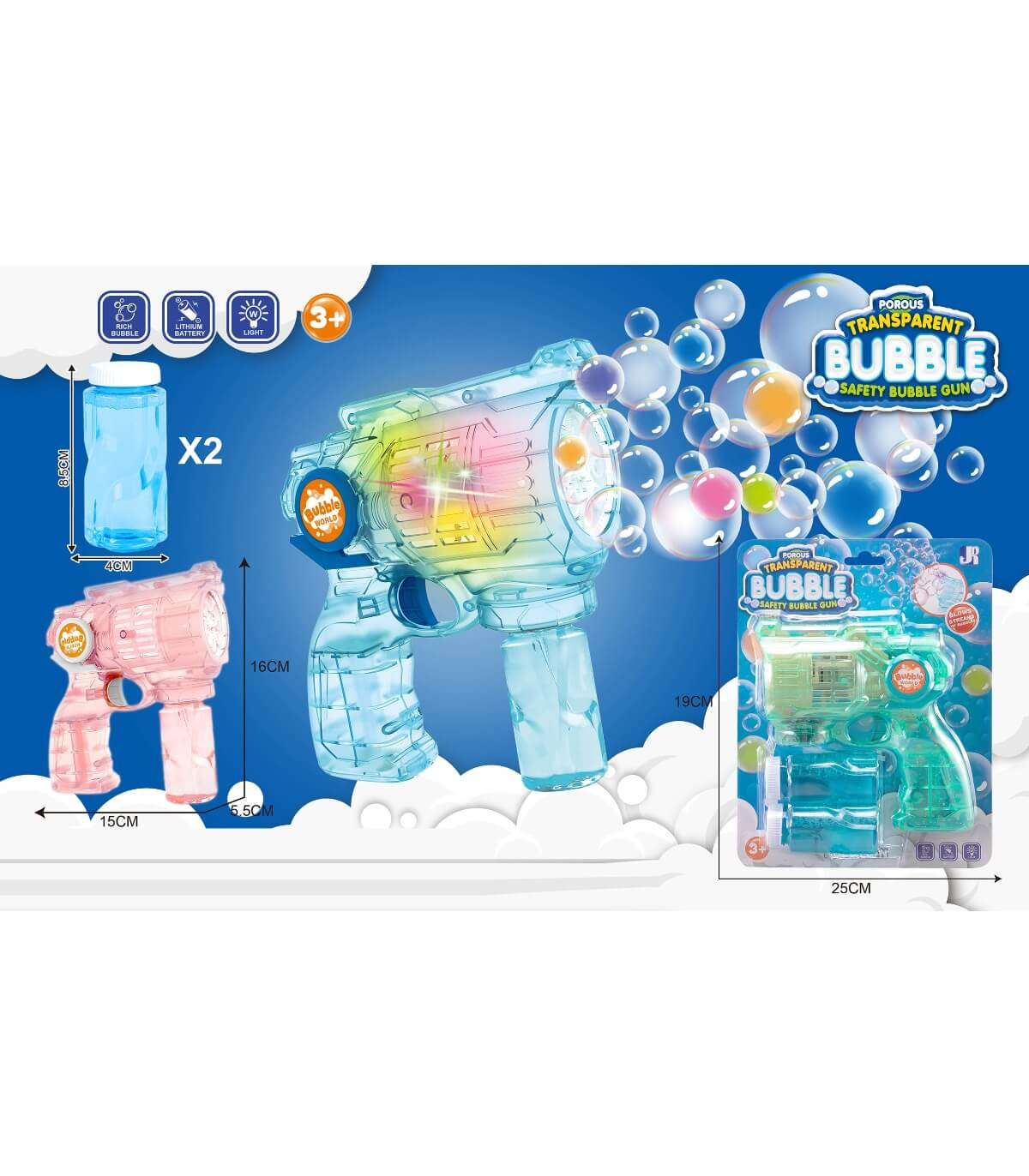 Пистолет за сапунени мехурчета, със светлина. Съдържа 2 флакончета с течност. Подходящо за момичета и момчета над 3 години.